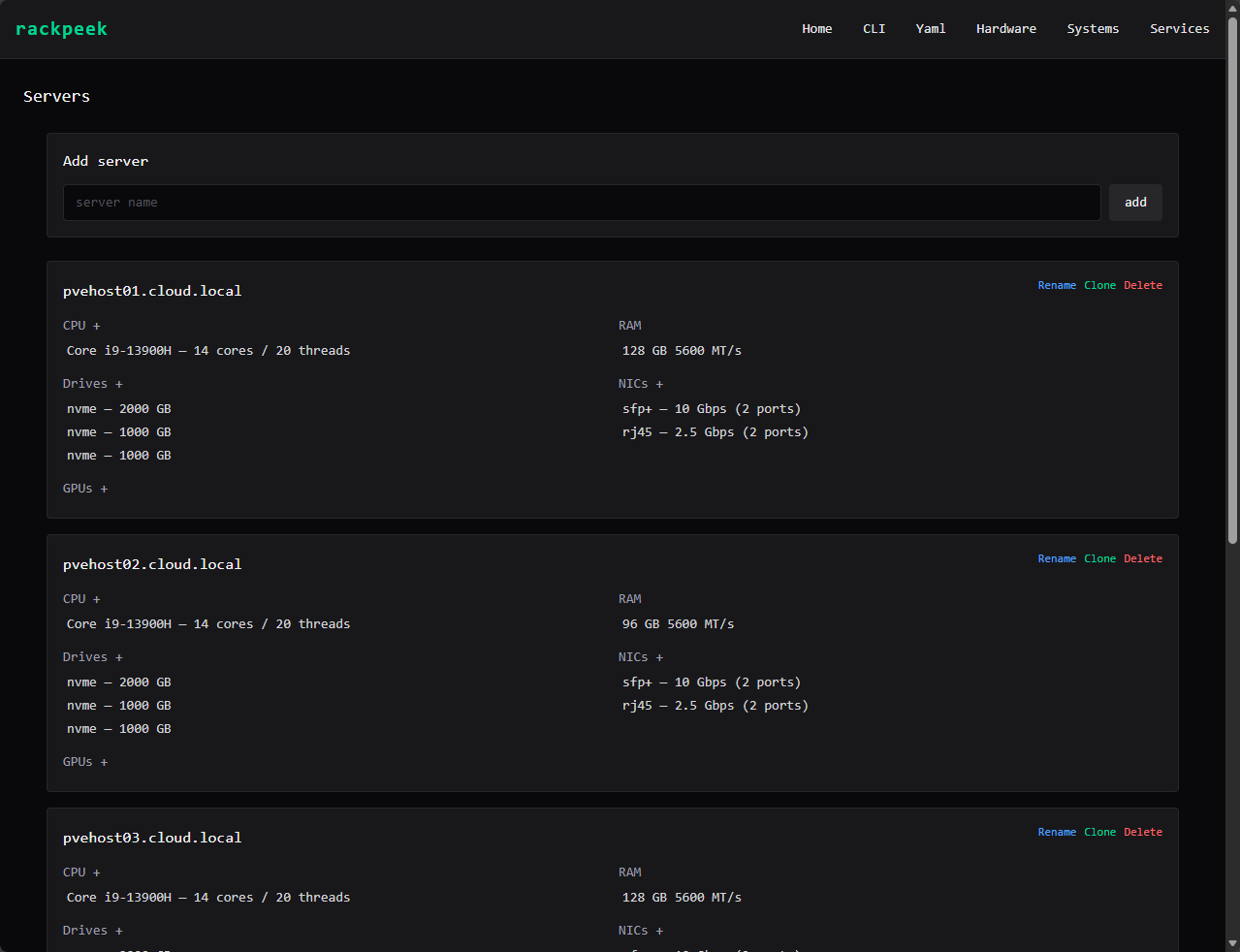 - Maybe even service deployment? If we define services in RackPeek, could it deploy these for us?