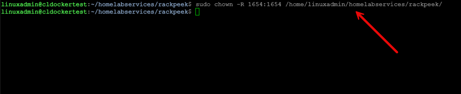 sudo chown -R 1654:1654 /home/linuxadmin/homelabservices/rackpeek/