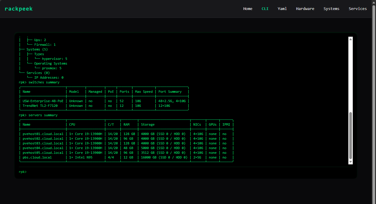 RackPeek CLI input