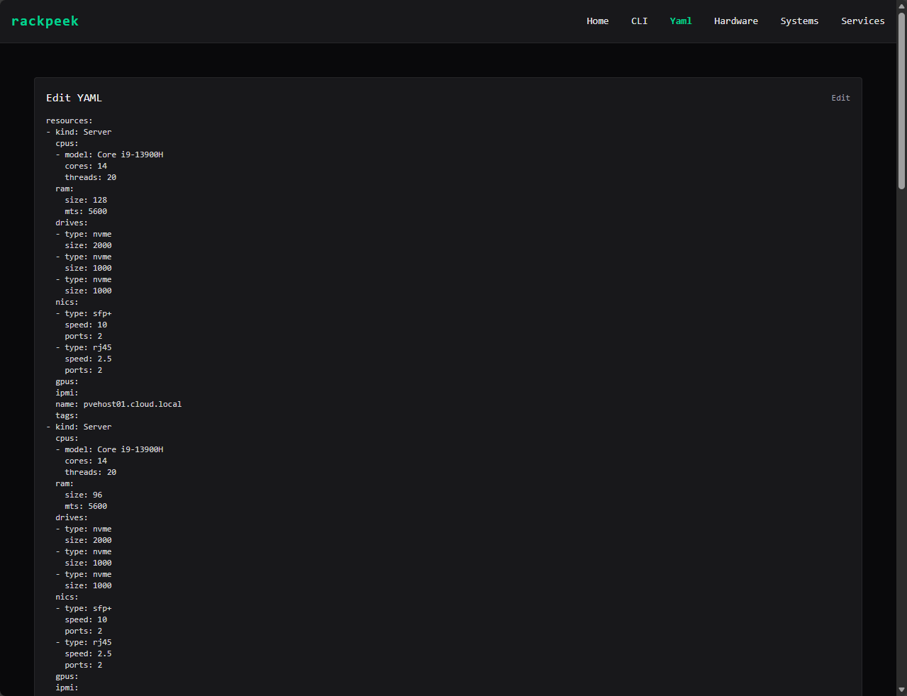RackPeek lets you do this all inside structured YAML files. Then it renders a visual representation of your rack based on that configuration. So, the beauty of this, like infrastructure as code, your rack documentation and home lab documentation becomes text. Then, your text lives in Git.
