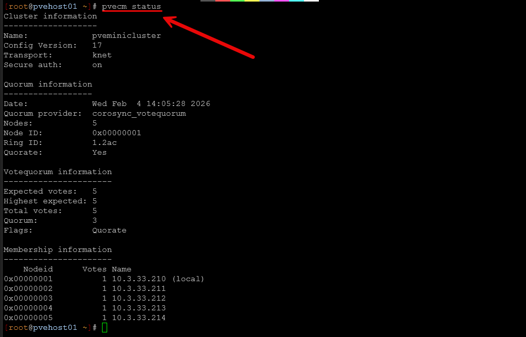 # Verify Proxmox cluster is healthy