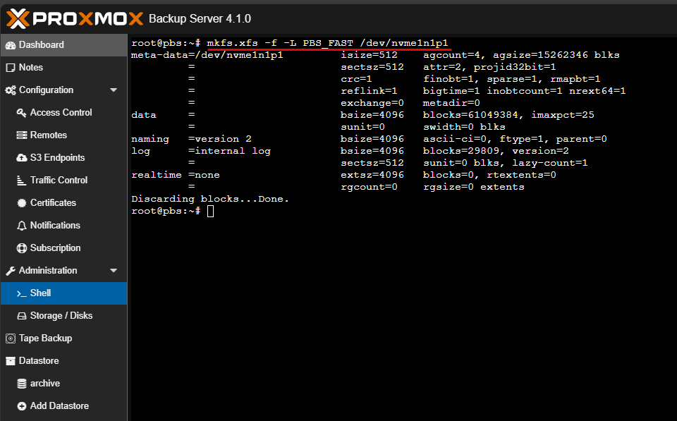 mkfs.xfs -f -L PBS_FAST /dev/nvme1n1p1