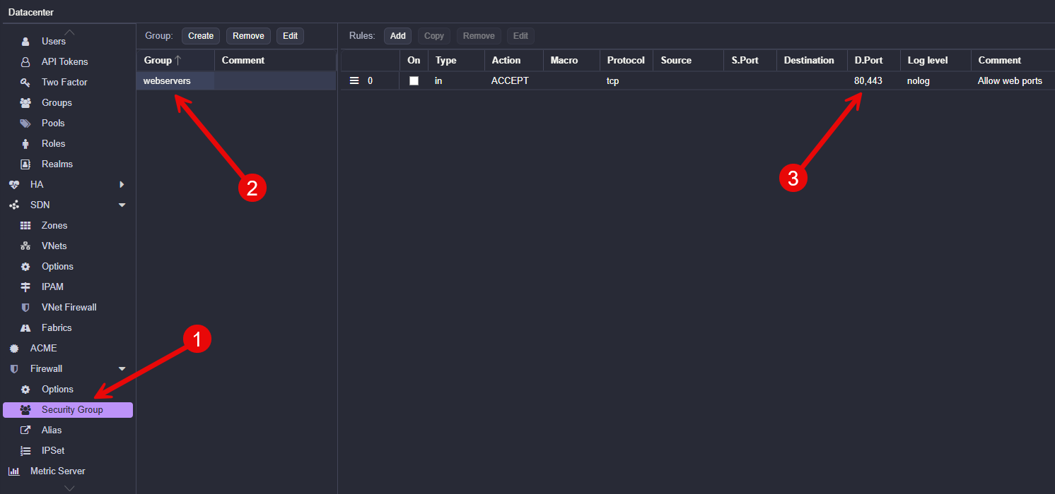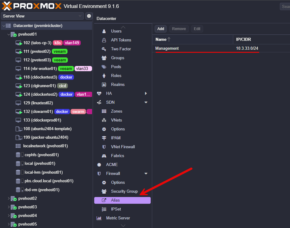 Proxmox supports firewall groups and aliases. These allow you to define reusable objects that can be used by multiple firewall rules.