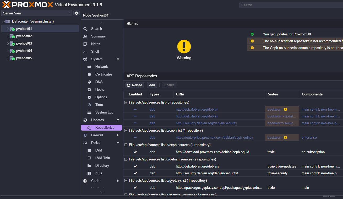 - Configure your Proxmox nodes to use the internal mirror