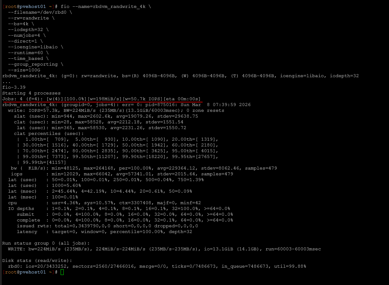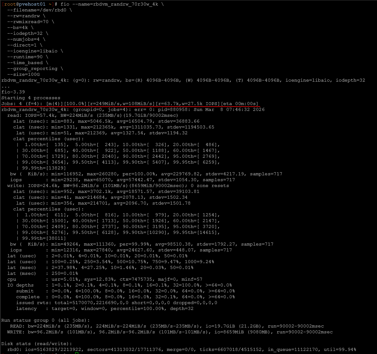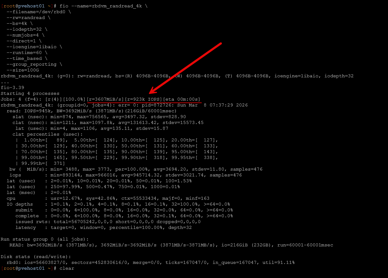 That level of latency is approaching local NVMe performance, which is impressive considering these reads are coming from a distributed storage system spanning multiple nodes in my Proxmox Ceph cluster.