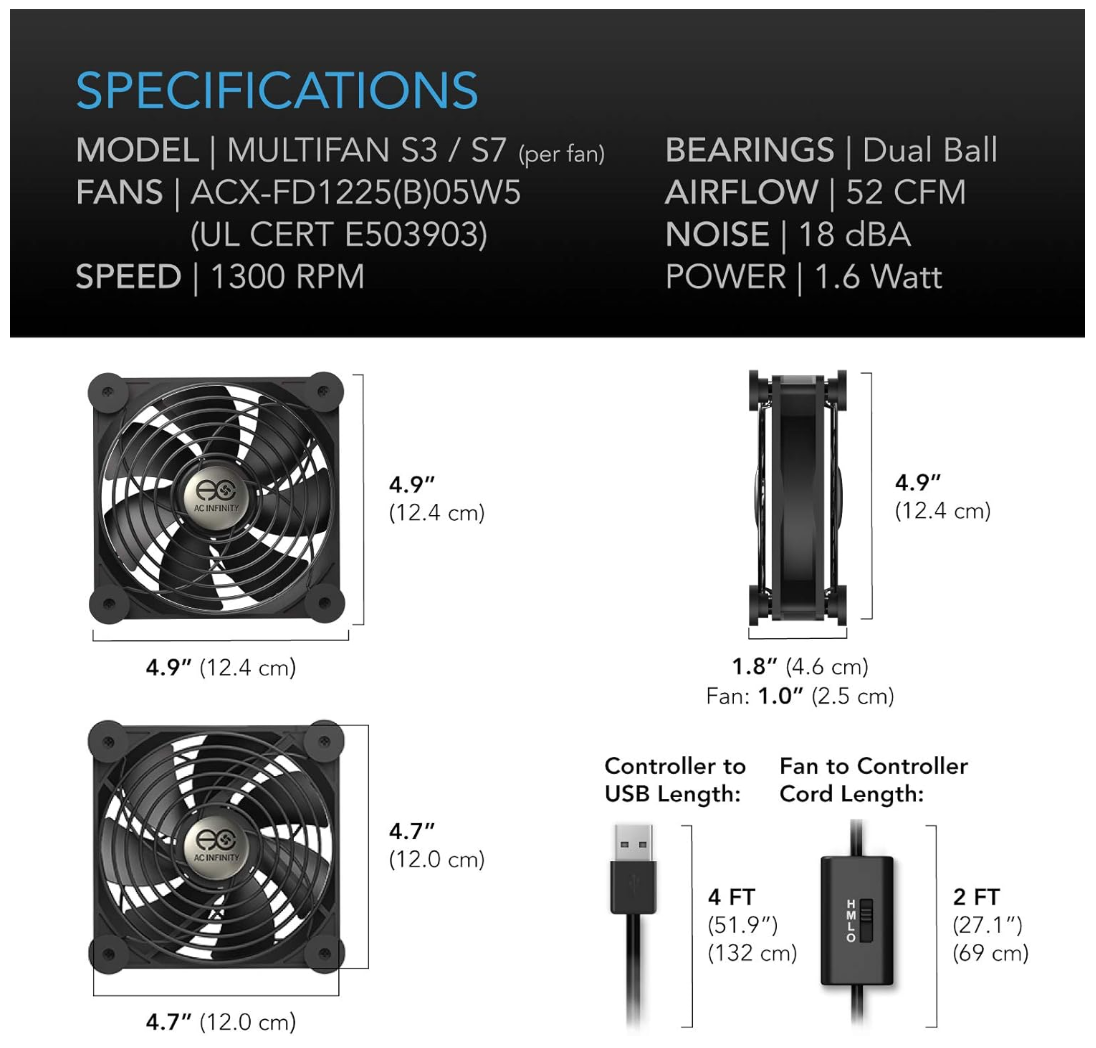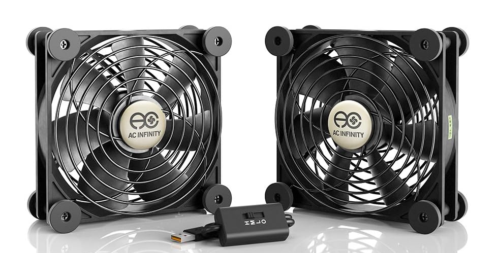 One concern with adding fans is noise. But, these USB dual fan units I chose run at an extremely low noise level. It adds only a low background air noise that is super quiet. I don’t even hear it to be honest since I have other louder gear like a NAS and switches, etc.