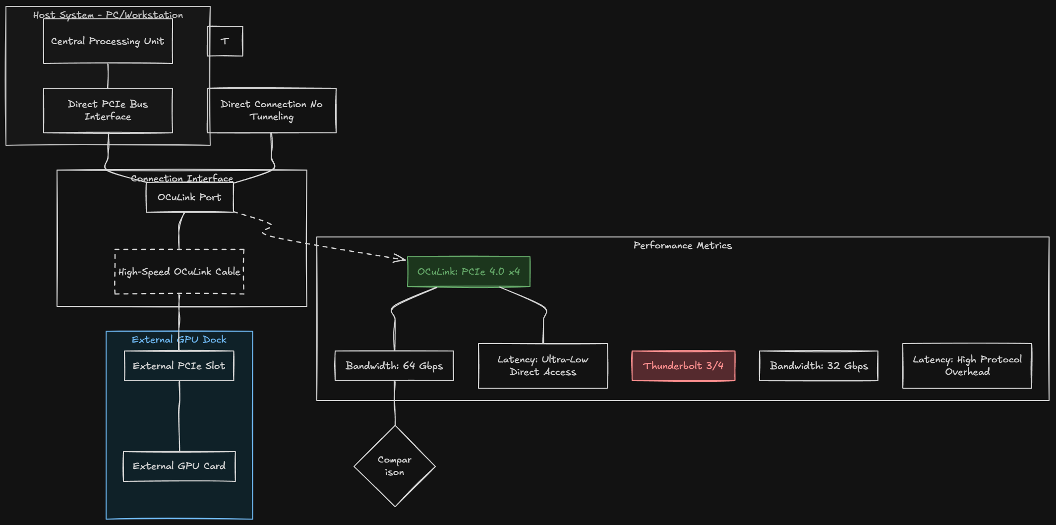 | Maximum Bandwidth | Up to ~64 Gbps via OCuLink |
