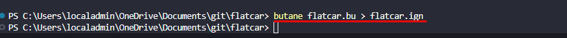 Once you have your file created in the Butane YAML format, we use the butane command line tool to convert it to the ignition format: