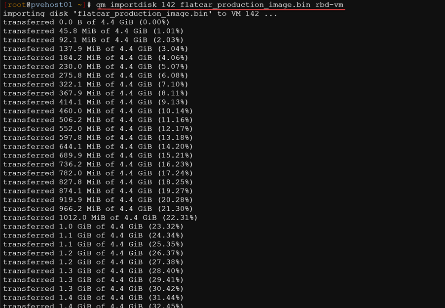 qm importdisk 142 flatcar_production_image.bin rbd-vm