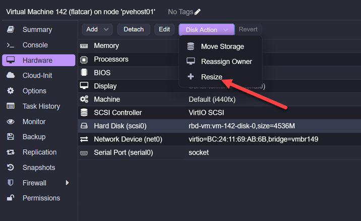 So, the easy thing to do next is to extend the disk that it defaults with in Proxmox.