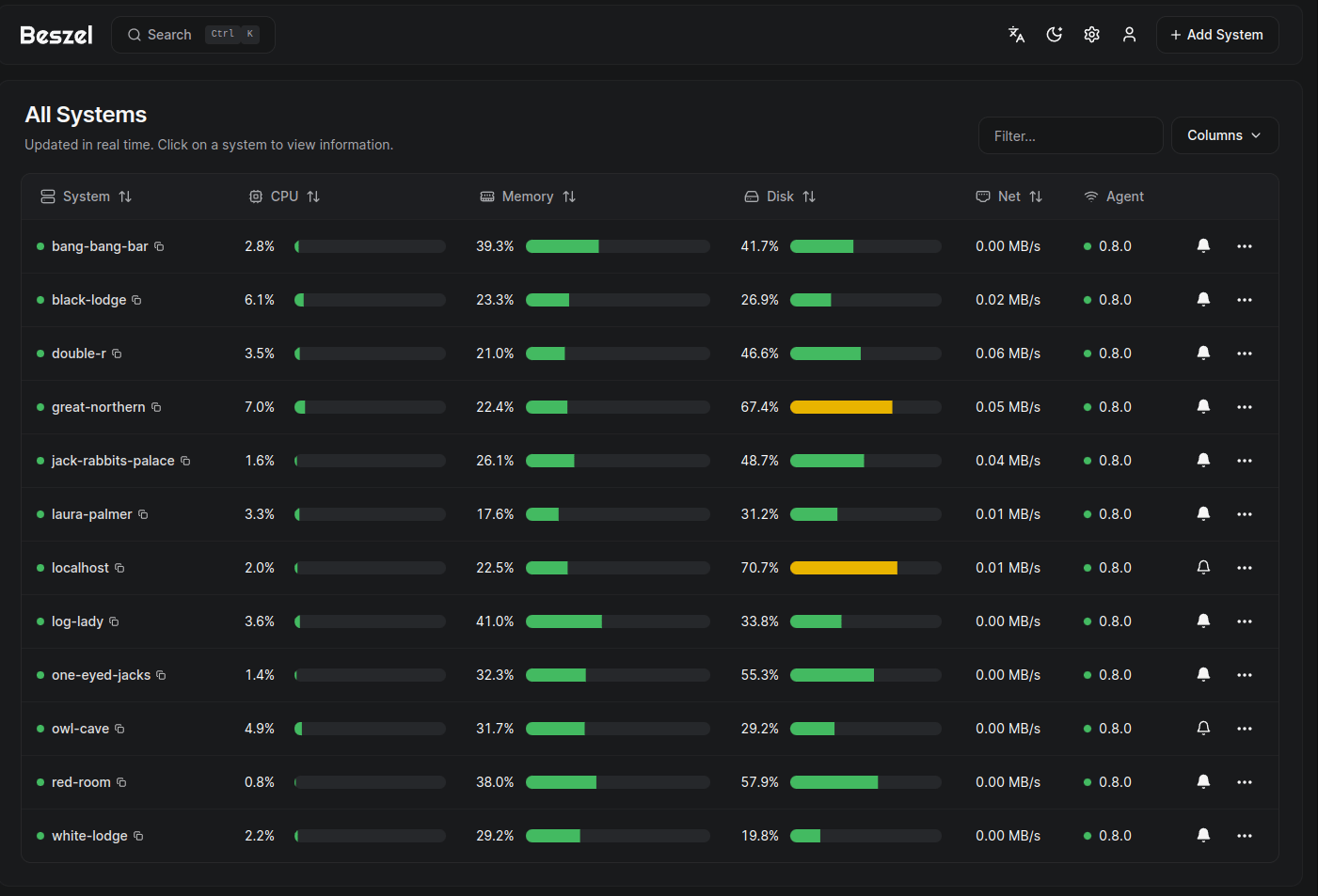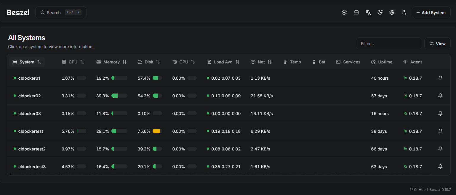Beszel by its very intent is a lightweight monitoring tool that is designed to give you visibility into your systems without requiring you to spend lots of time on complex configurations and tweaking. Beszel focuses on the basics and does those VERY well.