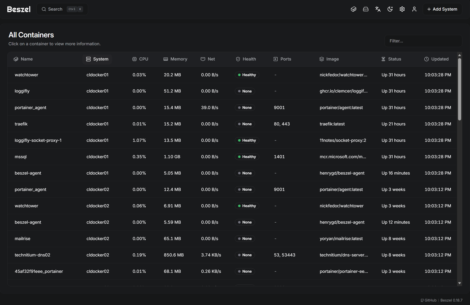 For most home lab environments, I think Beszel provides just the right amount of visibility and monitoring for container-heavy environments.