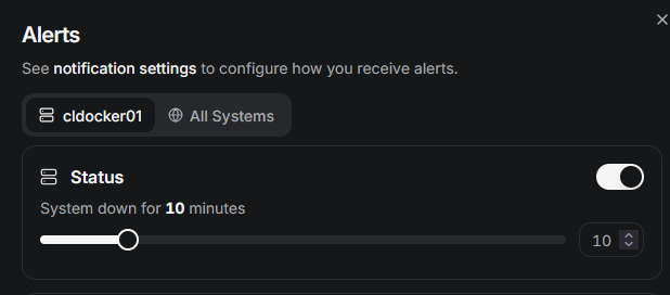 One of the things I really like about configuring Beszel alerts and notifications is how simple this configuration process is. It doesn’t overwhelm you with “nerd knobs”, but instead you have a simple toggle you flip on and then a slider to configure the threshold before it notifies you.