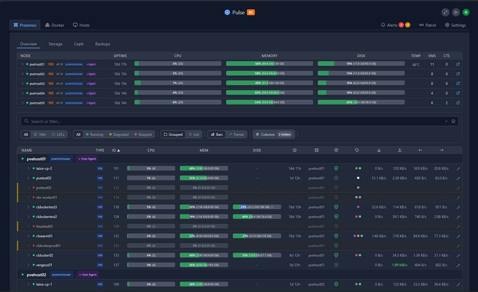 With Pulse, you can keep an eye on your Proxmox VE Servers, clusters, Proxmox Backup Servers, and also Docker hosts and containers. So it pretty much covers everything that most will be running in today’s home lab.