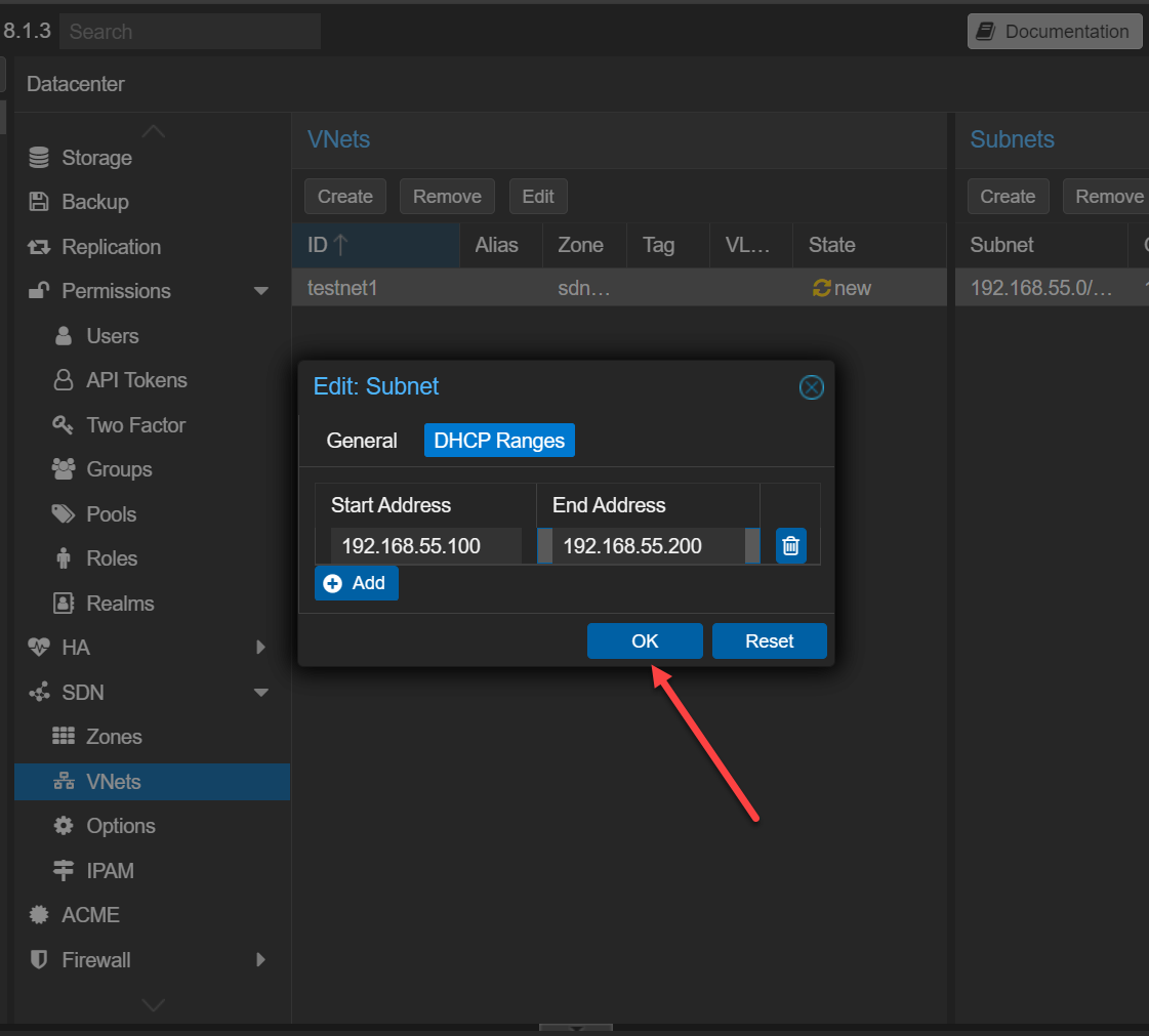 - Subnets – these define IP ranges and can include DHCP or IP address management if you want Proxmox to handle addressing.