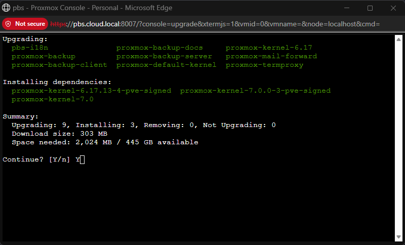 This will launch the window you see here. Enter “Y” and ENTER to confirm the upgrade operation.