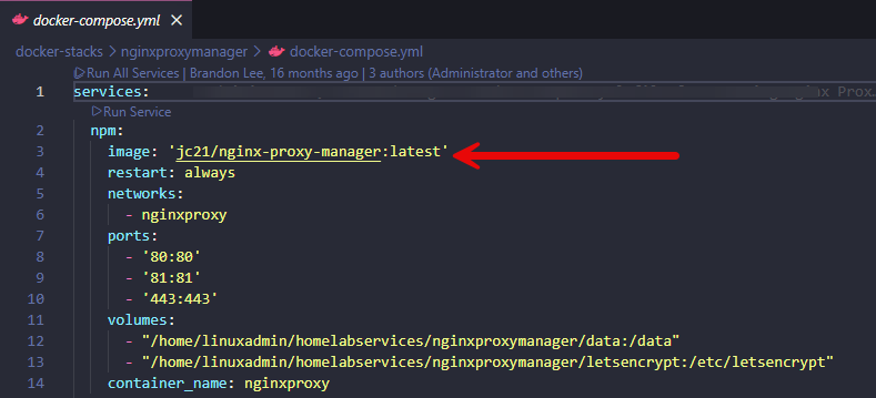 Instead of just blindly copying a docker-compose example, take a few minutes to better understand the configuration. Look at the image being used. Is it outdated? Is the configuration of the container still recommended to be done the way the example is showing? Look also at the environment variables, volume mappings and network configuration.