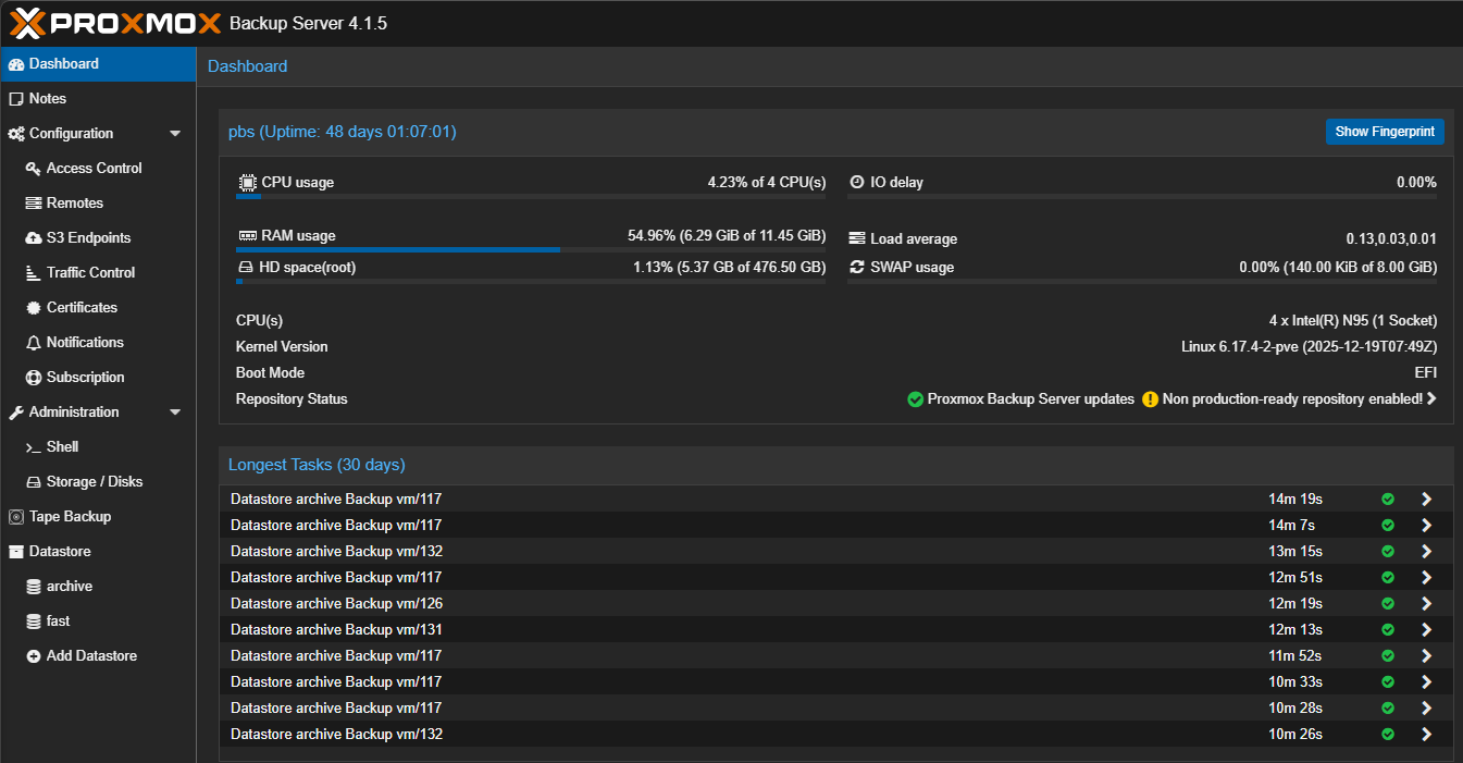 | Heavy or overlapping jobs | Backups, updates, or rebalancing running at the same time | Proxmox tasks, cron jobs, Kubernetes jobs |