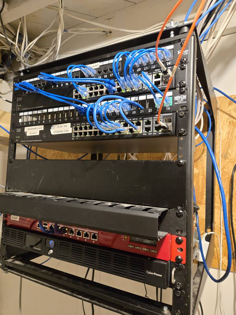Here is my current homelab - this looks huge, but most of this is home networking. We live in Northern Mi on 20 acres with several metal outbuildings. I have ethernet run to all buildings so there can be access points and security cameras. This past summer i trenched 500 ft out to a secluded back field where i hunt. I ran 2 lines of cat 6 with POE extenders and have an AP and a security camera back there. I now have wifi while hunting (we have no cell coverage)