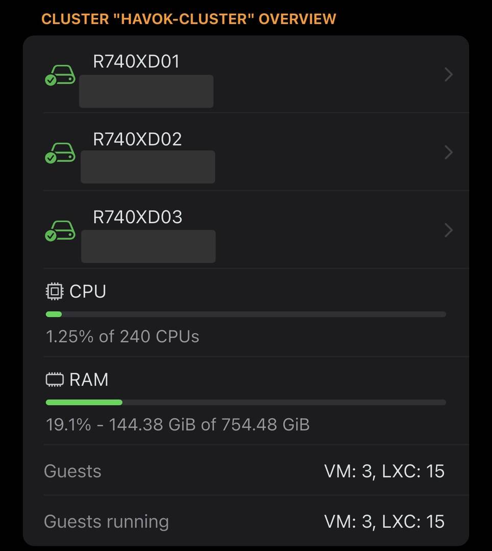 My biggest challenge so far has been Ceph. Across the three nodes I have roughly 45 TiB of usable storage. It runs over an internal 10G DAC loop. Performance isn’t amazing, mostly because the storage pool consists of a m