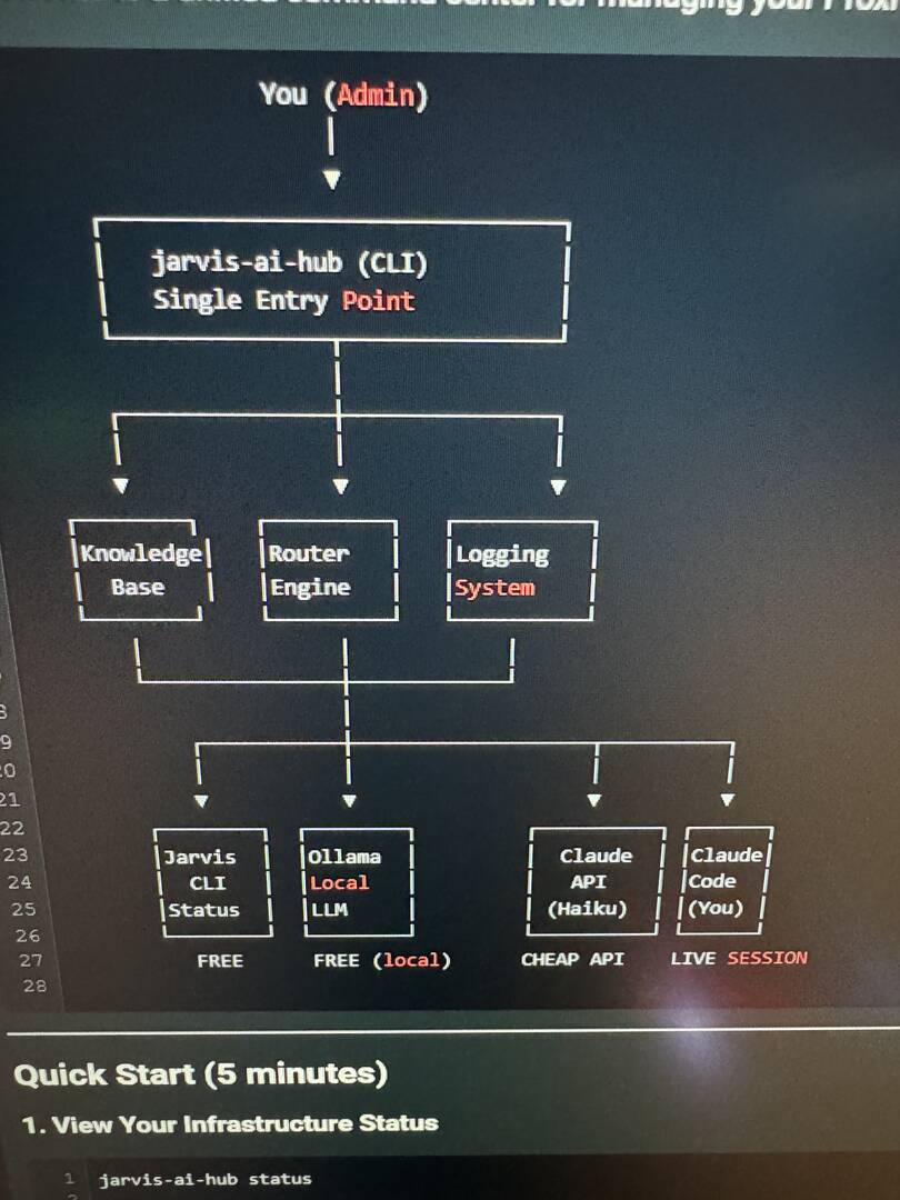 My current main project is an internal “Jarvis.” Right now it’s CLI-based and leverages Ollama locally along with Claude (Anthropic) and Gemini. The goal is to eventually have something visually appealing and genuinely useful—an AI assistant that integrates into my daily life and helps manage the cluster. Progress has been steady, and YouTube has once again been a huge help.