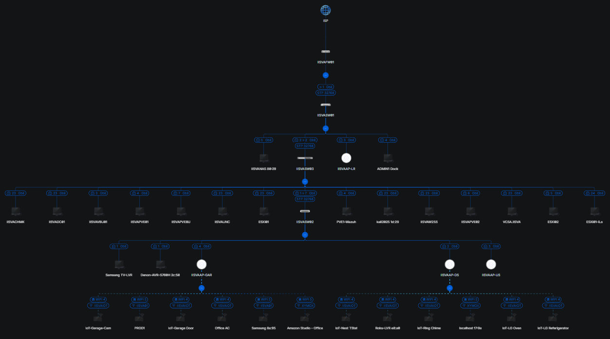 This all started as a way to add a couple of Reolink camera in the house. That gave me an excuse to run Cat6a through out my whole house and add in the 2960X to run it all. Then I figured I had a good setup to keep building on so I added an old 1921 router from our scrap pile at work to bridge my home network and my tiny lab. From there I cleared some space in the garage with the intention to move most of my lab gear to. I'm running an Omada wireless bridge between my house and garage which connects down to my 3560CX. This is also where I have my proxmox "server" and my AP's for testing. I really just wanted a place to play that was similar enough to my work environment that I could break stuff and not be worried about it. I still have a long way to go but its already proving to be very useful.