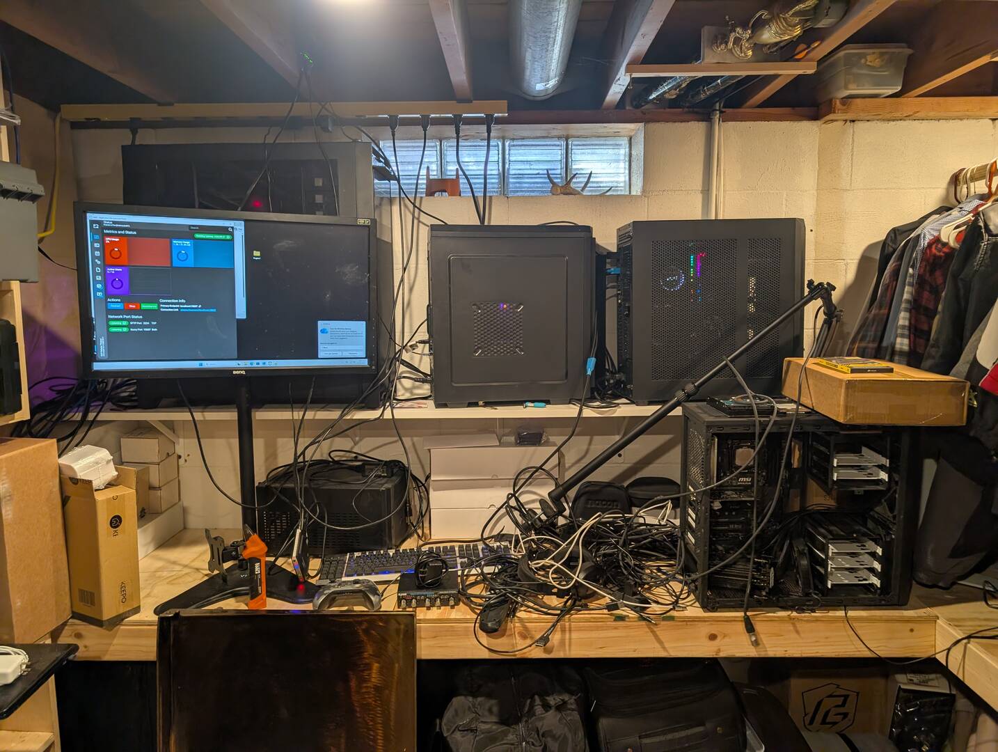 The setup lives in my basement workshop area, and yeah, the cable management could definitely use some work. But that's the beauty of a home lab, you can iterate and improve as you go. The next evolution will hopefully involve some proper rack mounting and a lot less spaghetti.