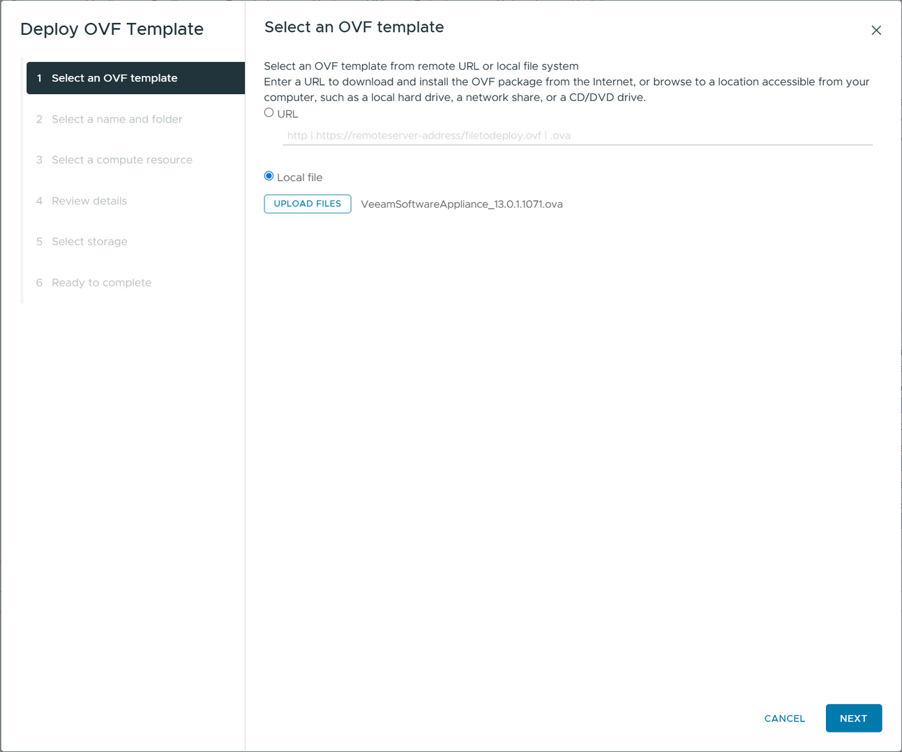 Below are screenshots of deploying the Veeam Data Platform 13 appliance in a VMware vSphere environment. First, you grab the ISO or OVA. Here I am grabbing the OVA appliance file.