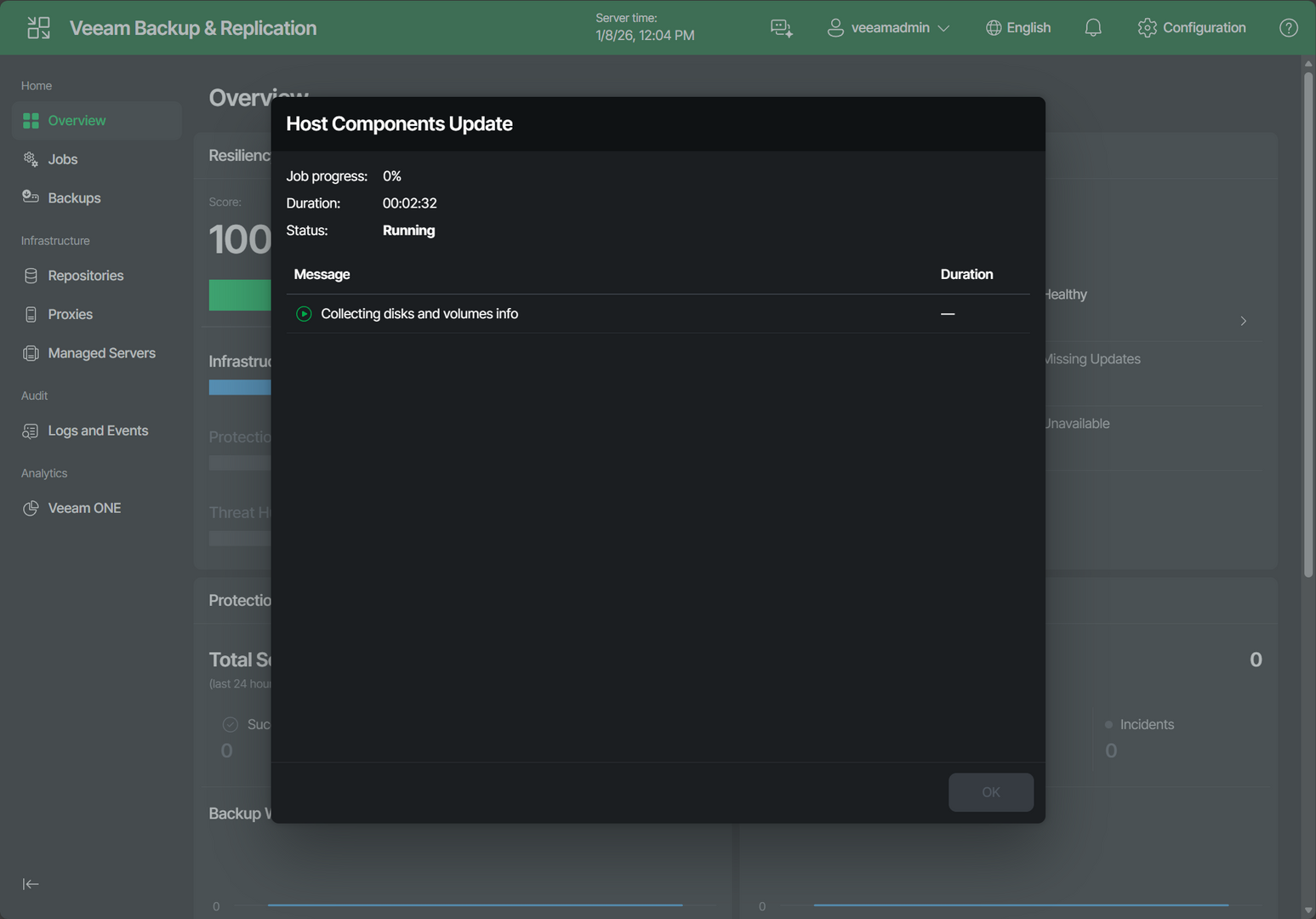 When logging in, the first thing it will do is update the host components and apply updates.