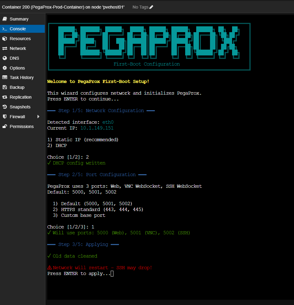 Interestingly, PegaProx provides both VM and LXC container templates you can download from their mirrors that already have PegaProx installed. You can install it in a Docker container as well, but this is noted to be a dev-only type solution. When you provision these, they have a quick wizardized provisioning process to configure PegaProx in your environment.