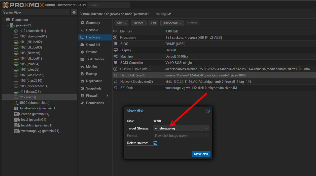 You can also check the box to delete the source storage if you want to get rid of the disk from the source virtual machine storage.