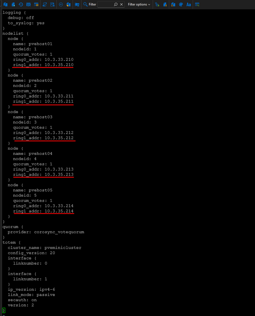 Result: Proxmox cluster has redundant communication paths with ring1 on dedicated 10.3.35.0/24 network
