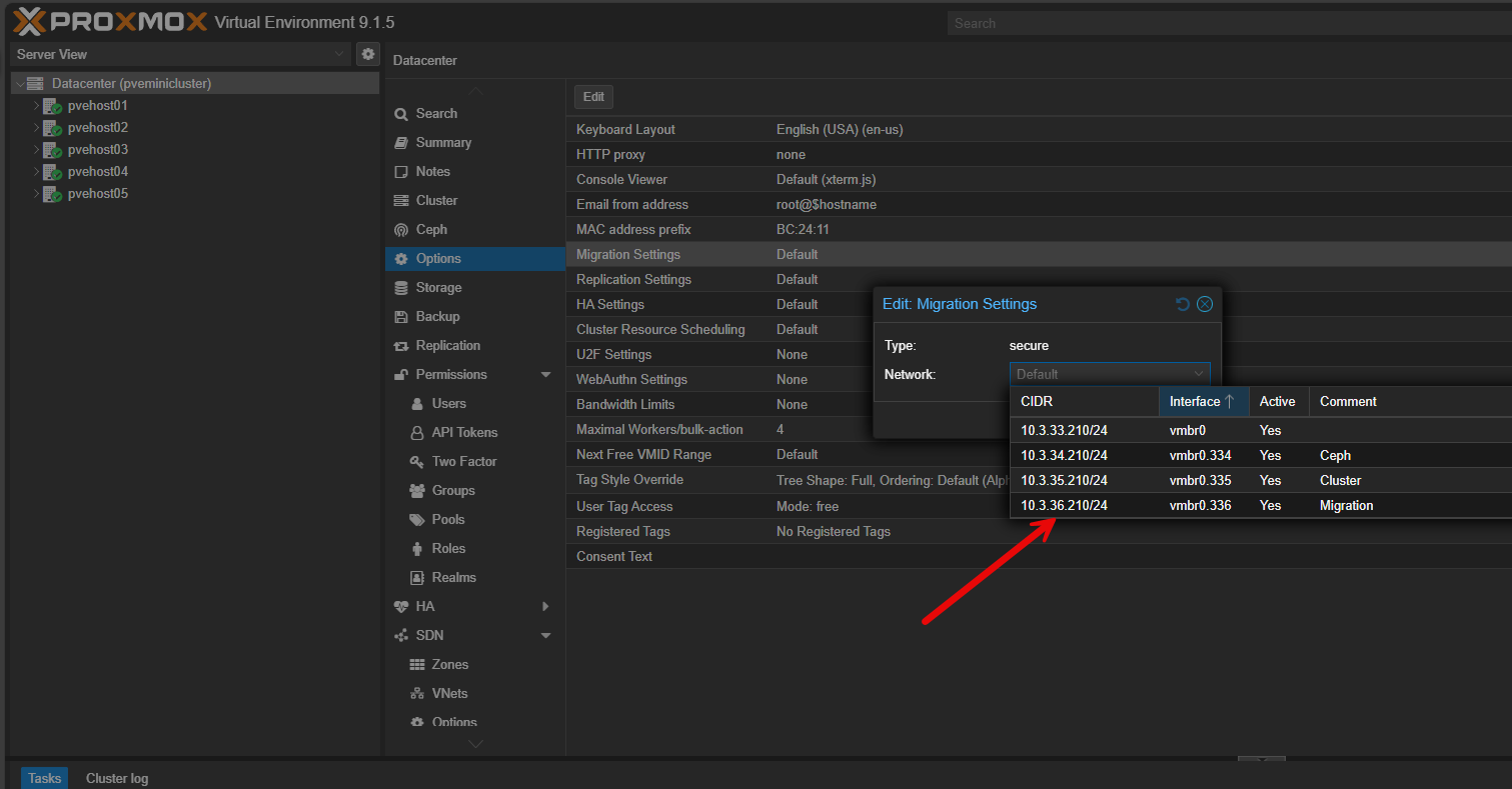 Result: VM live migrations now use dedicated 10.3.36.0/24 network with MTU 9000