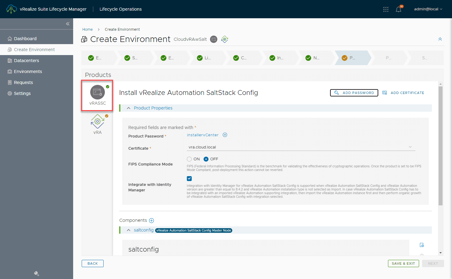 vRealize Automation SaltStack Config Installation using vRSLCM